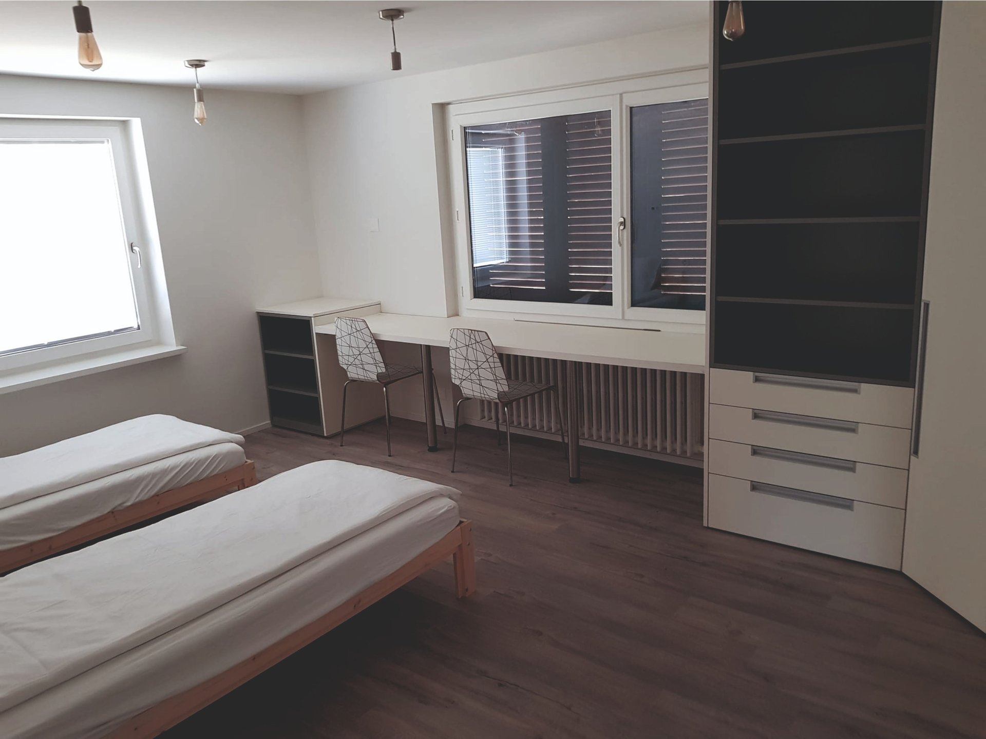 Zimmeraufteilung: vier Einzelzimmer und zwei Doppelzimmer (insgesamt sechs Zimmer).