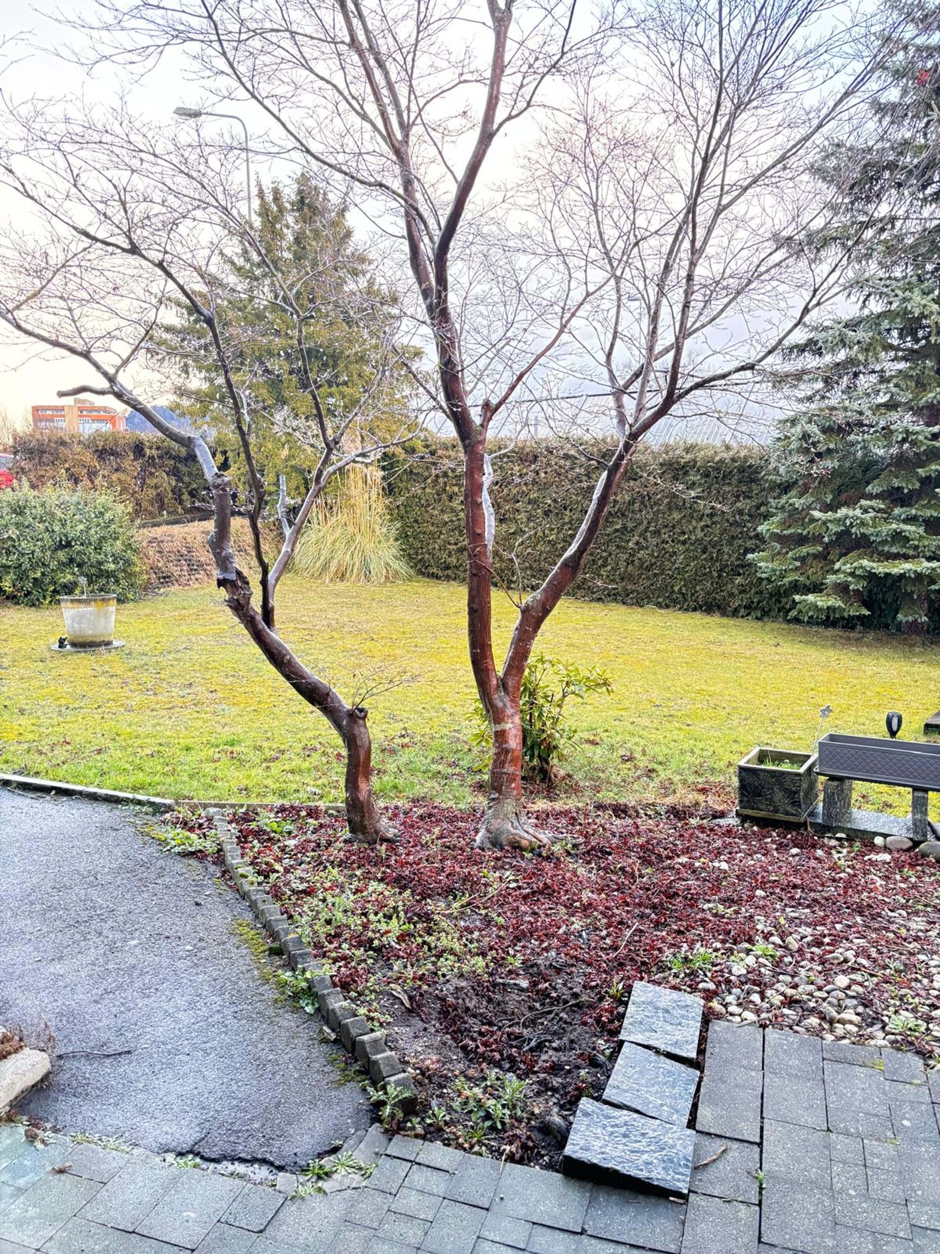 Einfamilienhaus mit grossem Garten und überdecktem Sitzplatz.